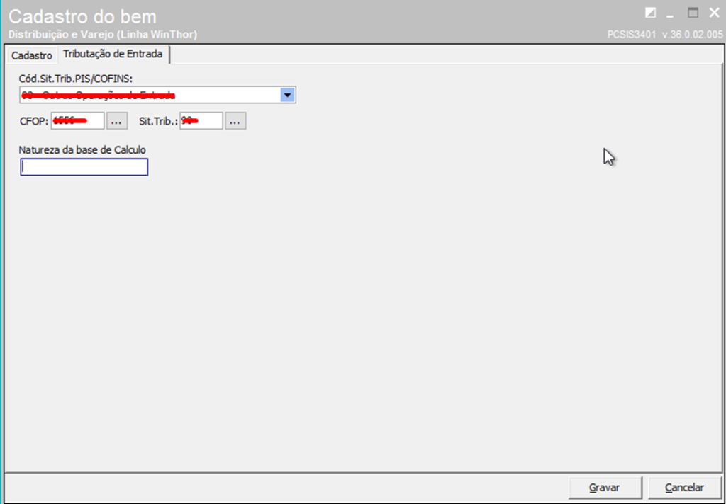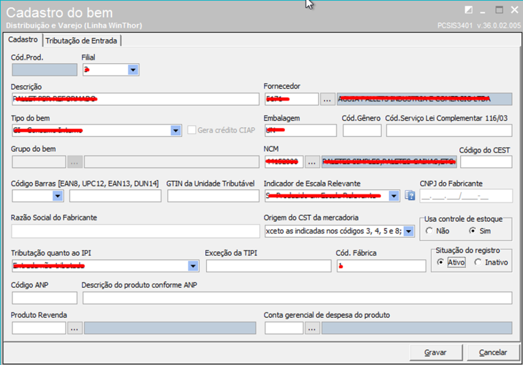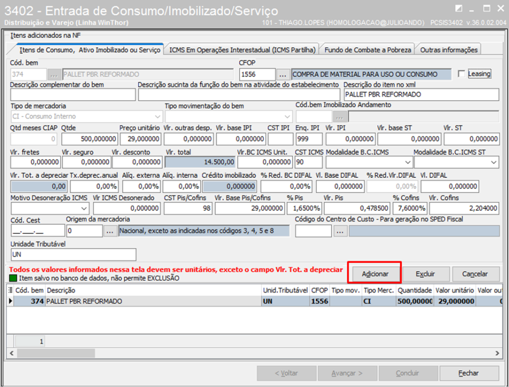 1. Cadastrar bem Imobilizado/Consumo na Rotina 3401;
