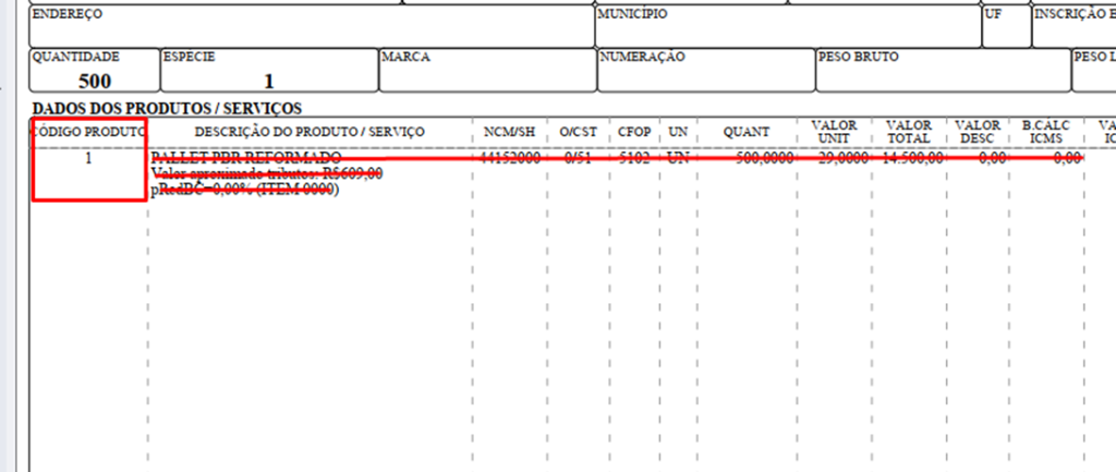 Identifique o código de fábrica na DANFe: