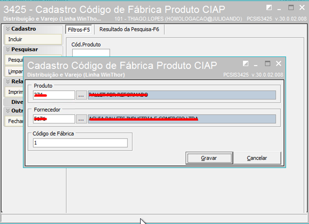 2. Vincular código de fábrica do produto Rotina 3425;