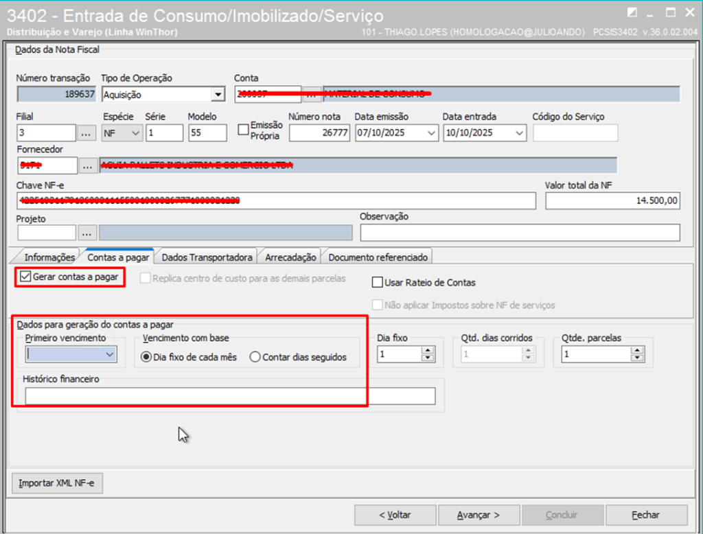 Informar Contas a pagar se houver e clique Avançar;