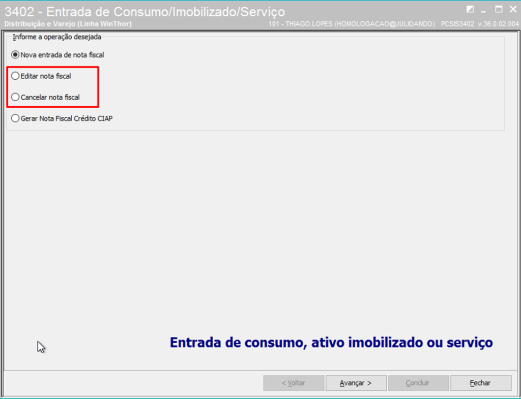 3. Realizar entrada da nota pela rotina 3402